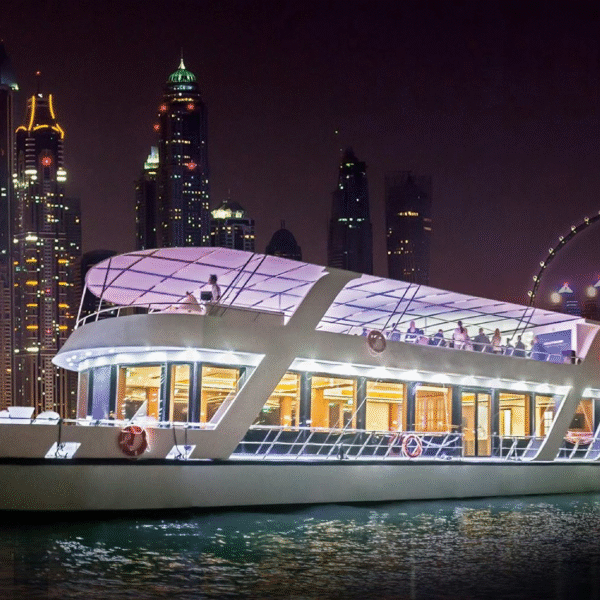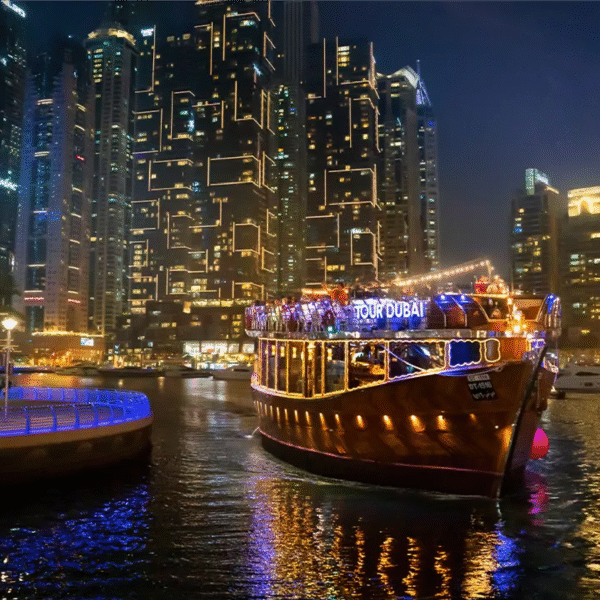 Our Marina Dhow Cruise combines magical sightseeing, delectable dining, and striking traditional entertainment shows in an elegant setting. Lasting for about 90 minutes, this Marina Dhow Cruise Dubai experience allows you to absorb the modern city’s unrivaled architecture, opulent yachts, and breathtaking waterfront sights at their best.